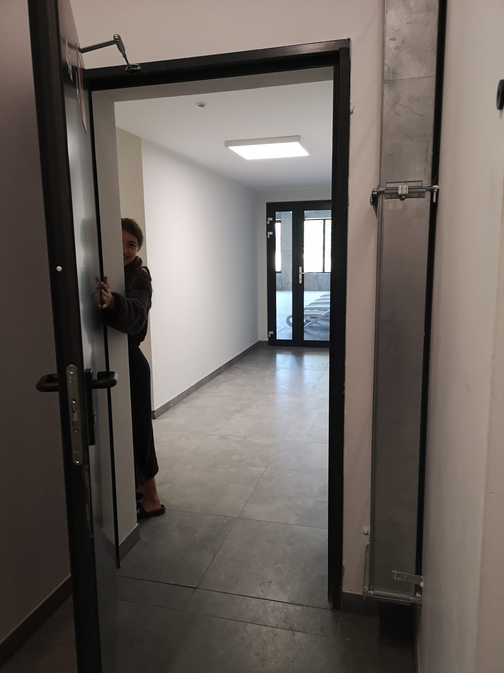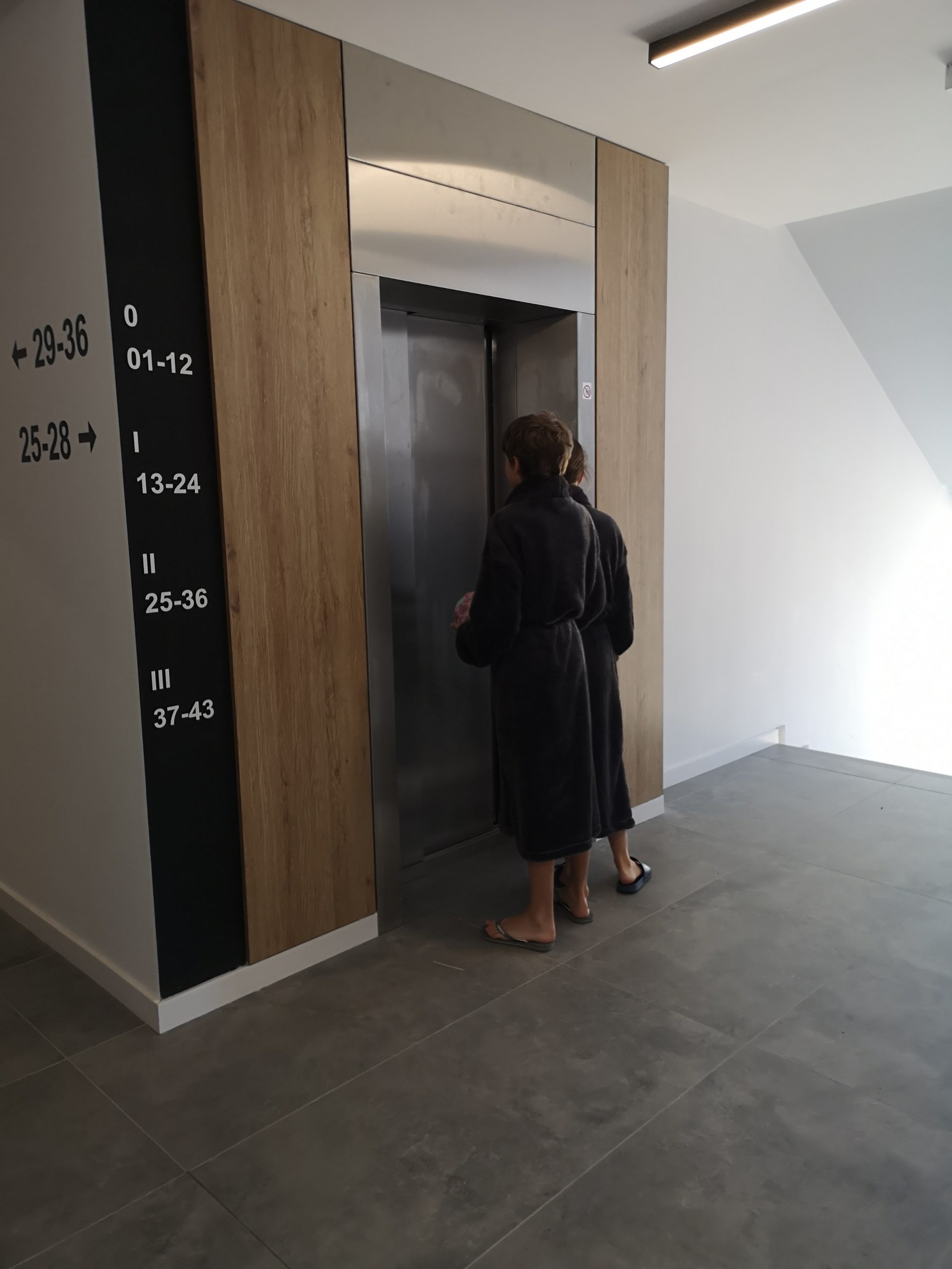 Der Eintritt erfolgt nur über den Rezeptionisten. Du benötigst die Plastikkarte die im Wohnbereich hinterlegt wurde für den Einlass. Es stehen 2 Karten für Eintritt zur Verfügung. Je Karte dürfen jeweils 3 Gäste in das Schwimmbad. Mit der Übergabe der Karte den den Rezeptionisten erhälst Du auf Wunsch auch einen Spintschlüssel für deine Kleidung. Denke bitte daran beim Verlassen den Schlüssel abzugeben und die Karte wieder mitzunehmen.